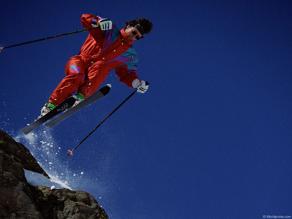Wallpaper Skis with sticks in the snowy mountains in the sun
