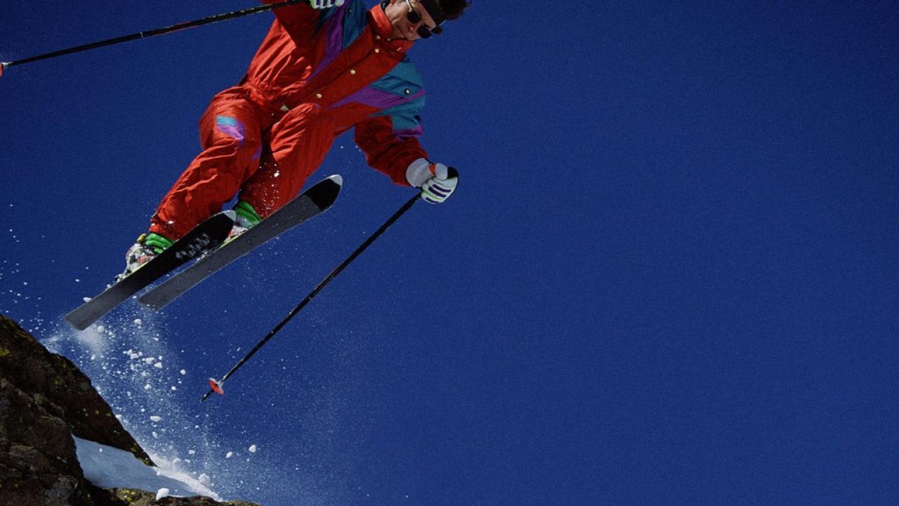 Wallpaper Skis with sticks in the snowy mountains in the sun