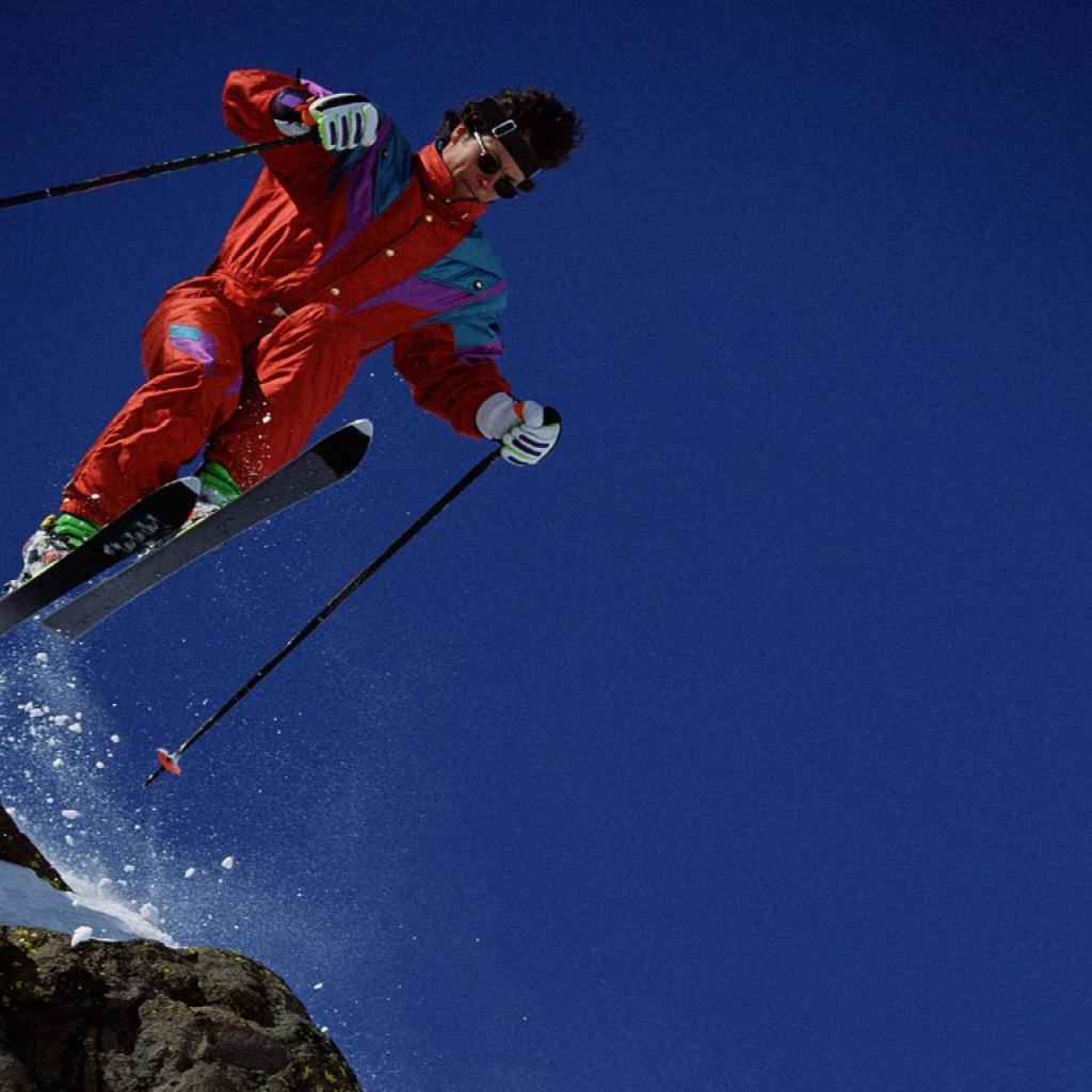Wallpaper Skis with sticks in the snowy mountains in the sun