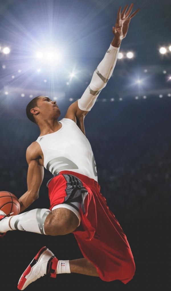 Wallpaper Jump ball basketball player Derrick Rose