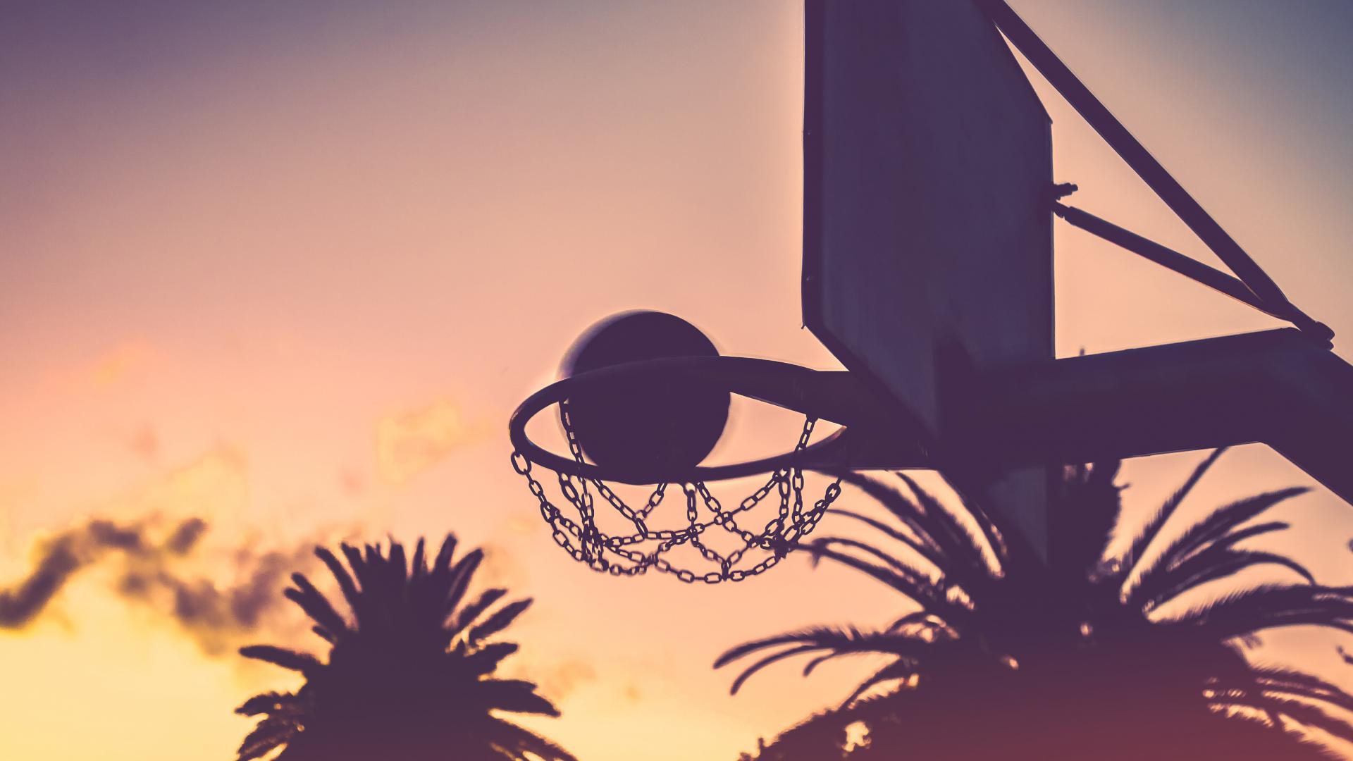 Wallpaper Basketball hoop with sunset