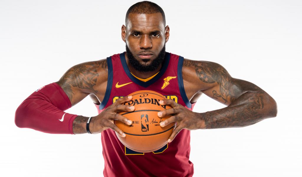 Wallpaper Basketball player LeBron James with a ball in his hands on a gray background