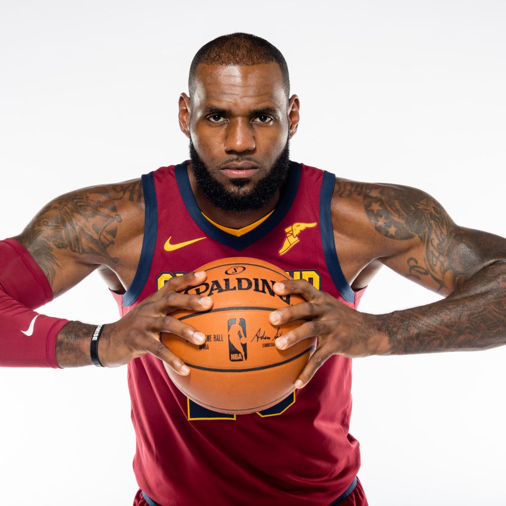 Wallpaper Basketball player LeBron James with a ball in his hands on a gray background
