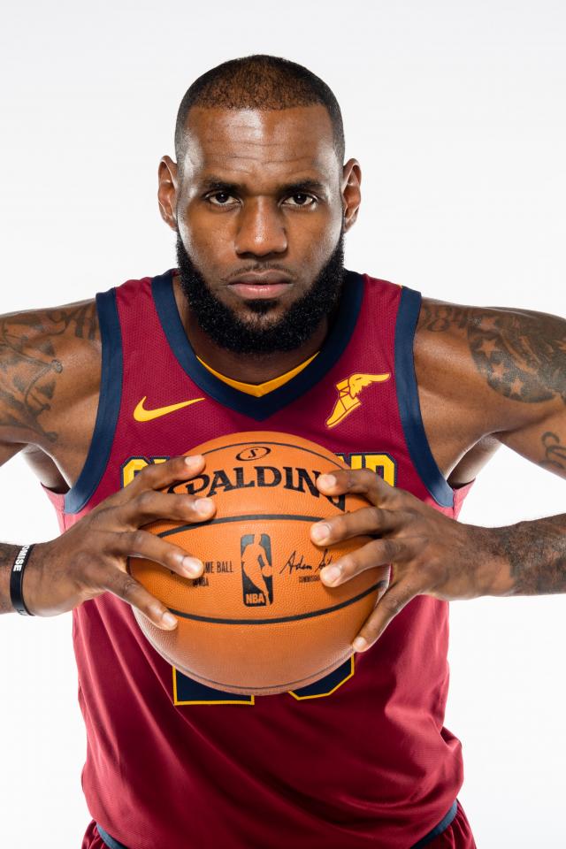 Wallpaper Basketball player LeBron James with a ball in his hands on a gray background
