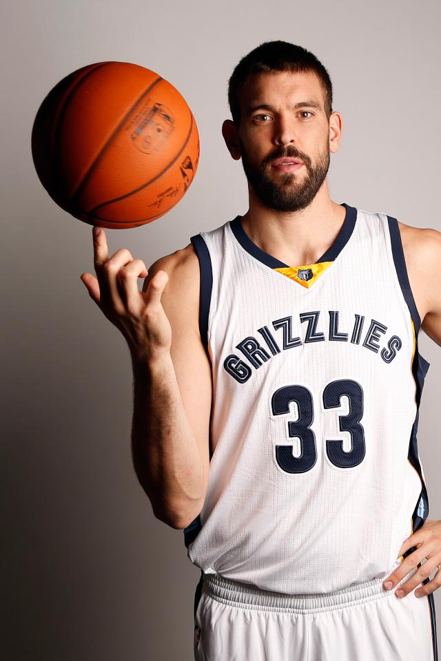 Wallpaper Spanish basketball player Mark Gasol with a ball on a gray background
