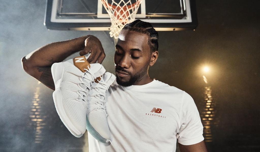 » Wallpaper American basketball player Kawai Leonard with sneakers in his hand