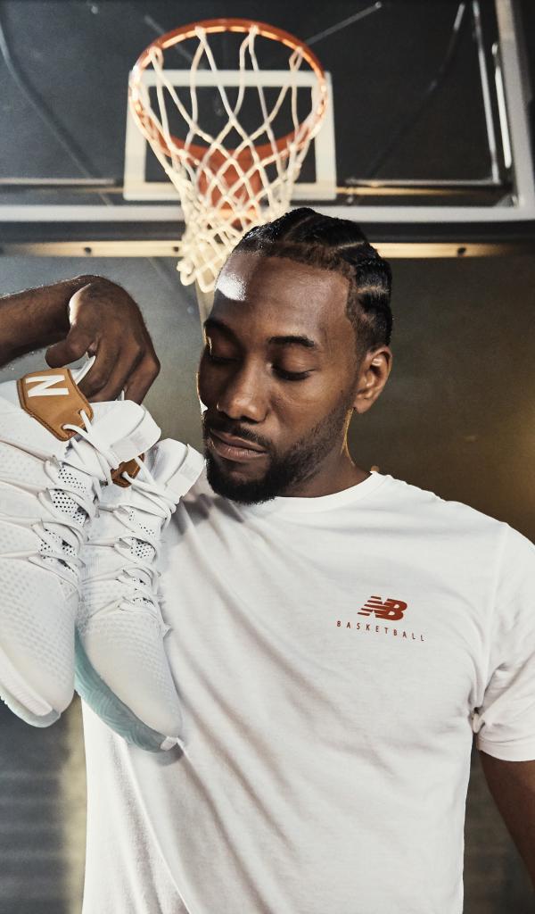 » Wallpaper American basketball player Kawai Leonard with sneakers in his hand