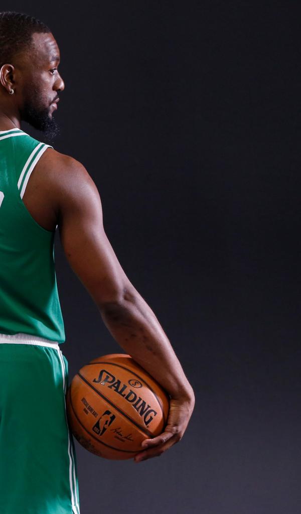 Wallpaper American basketball player Kemba Walker in uniform with the ball