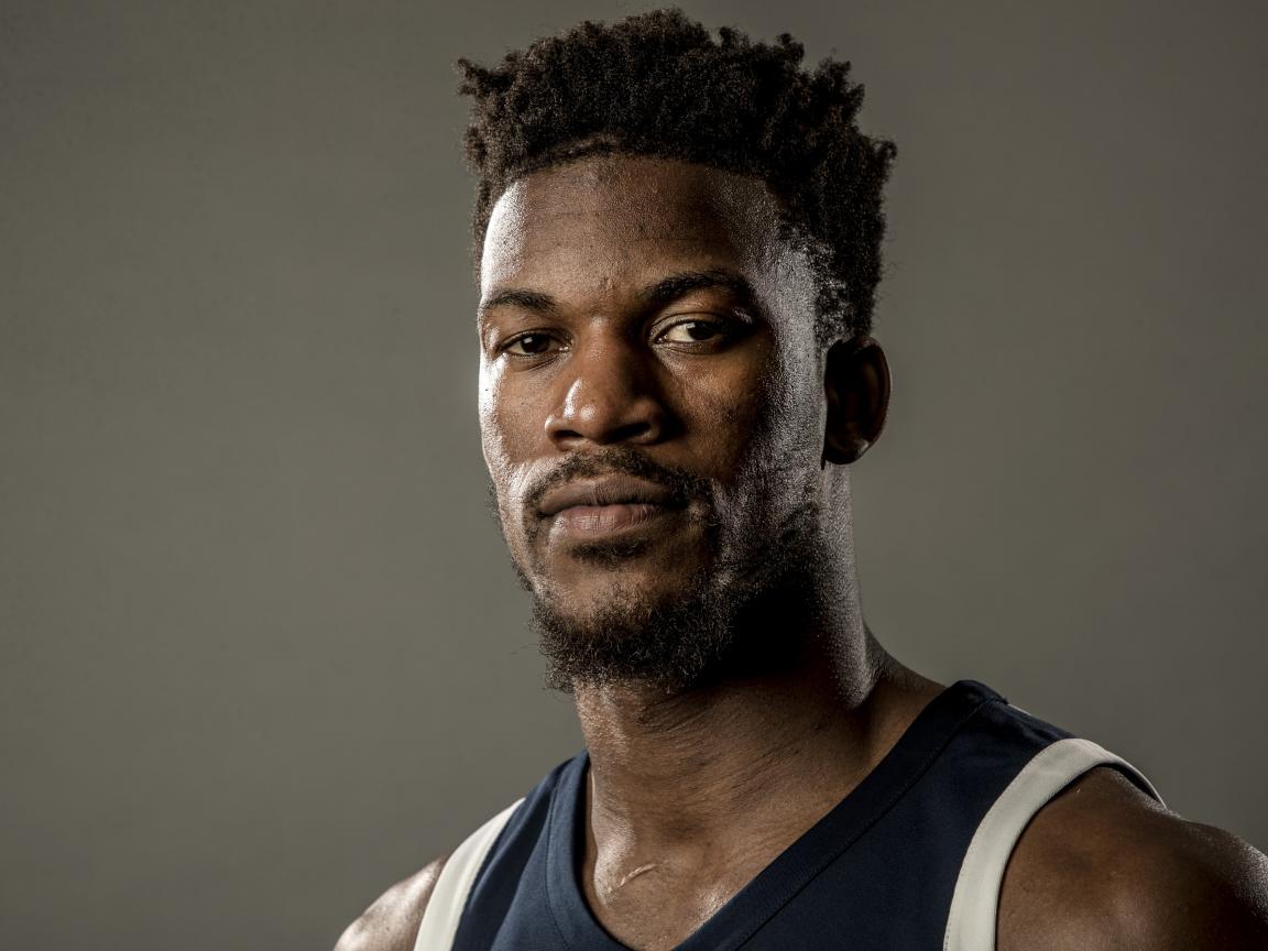 Wallpaper American basketball player Jimmy Butler on a gray background