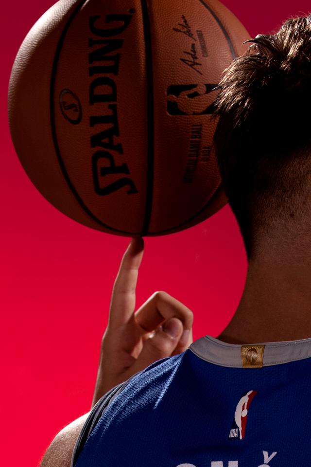 Wallpaper Basketball player Luka Doncic with a ball on his finger