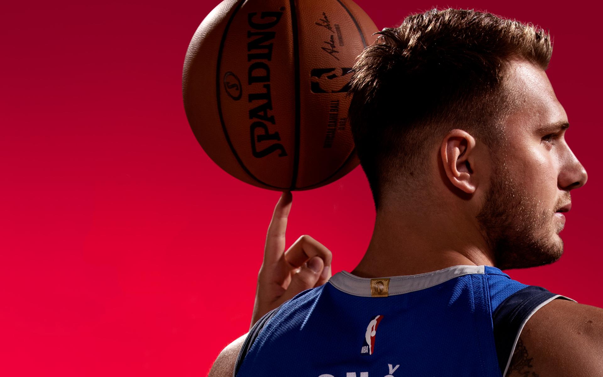 Wallpaper Basketball player Luka Doncic with a ball on his finger