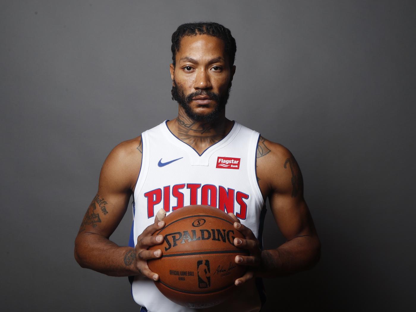 Wallpaper Basketball player Derrick Rose in the ball in his hands on a gray background