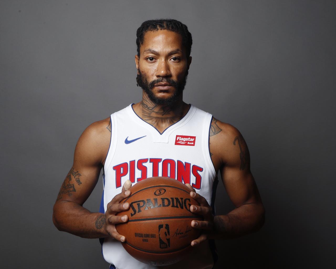 Wallpaper Basketball player Derrick Rose in the ball in his hands on a gray background
