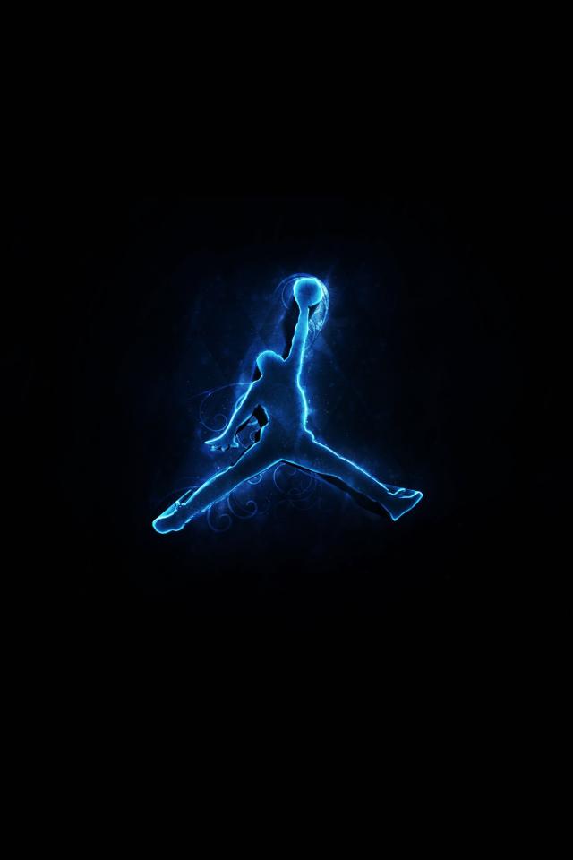 Wallpaper Blue silhouette of Michael Jordan on a black background