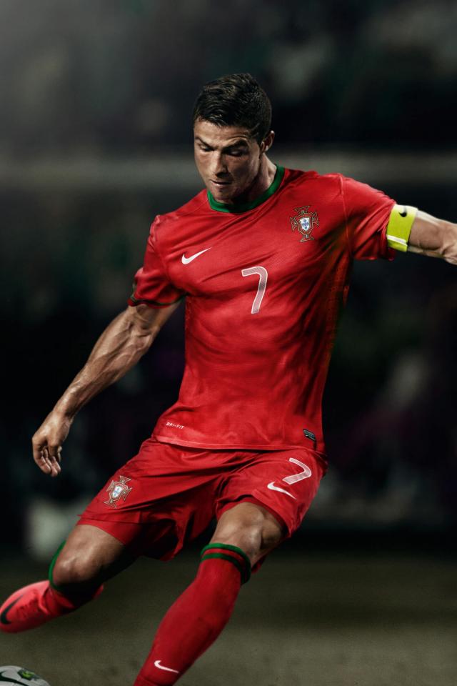 Wallpaper Cristiano Ronaldo with the ball on the soccer field