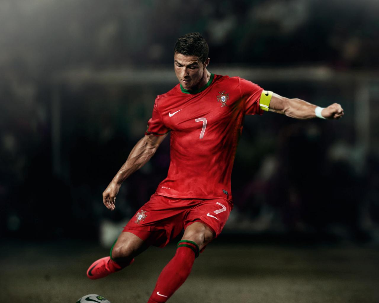 Wallpaper Cristiano Ronaldo with the ball on the soccer field