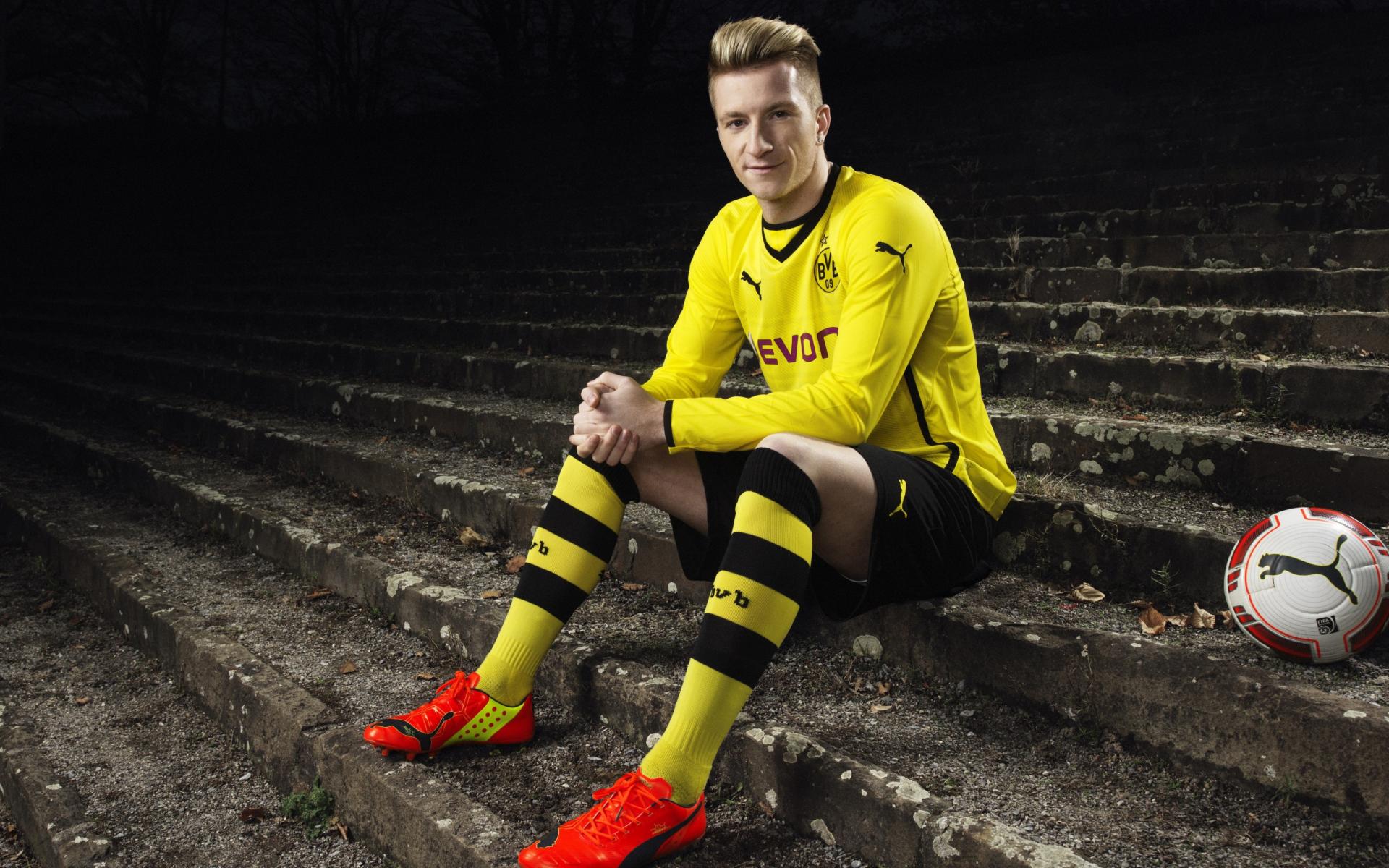 Wallpaper German soccer player Marco Reus sitting on the stairs