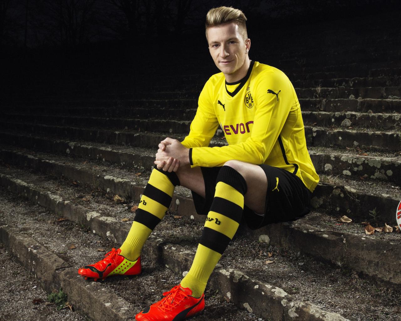 Wallpaper German soccer player Marco Reus sitting on the stairs