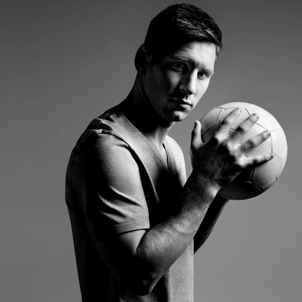 Wallpaper Football player Lionel Messi with the ball in his hands black and white photo