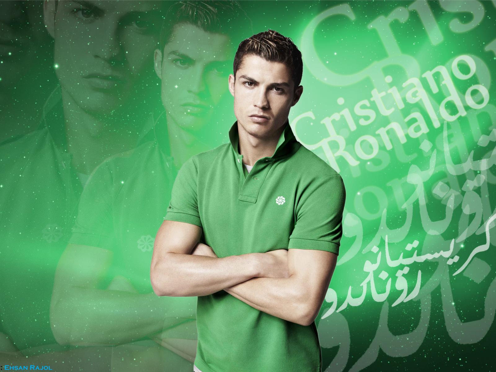 Wallpaper Popular footballer Cristiano Ronaldo photo on a green background