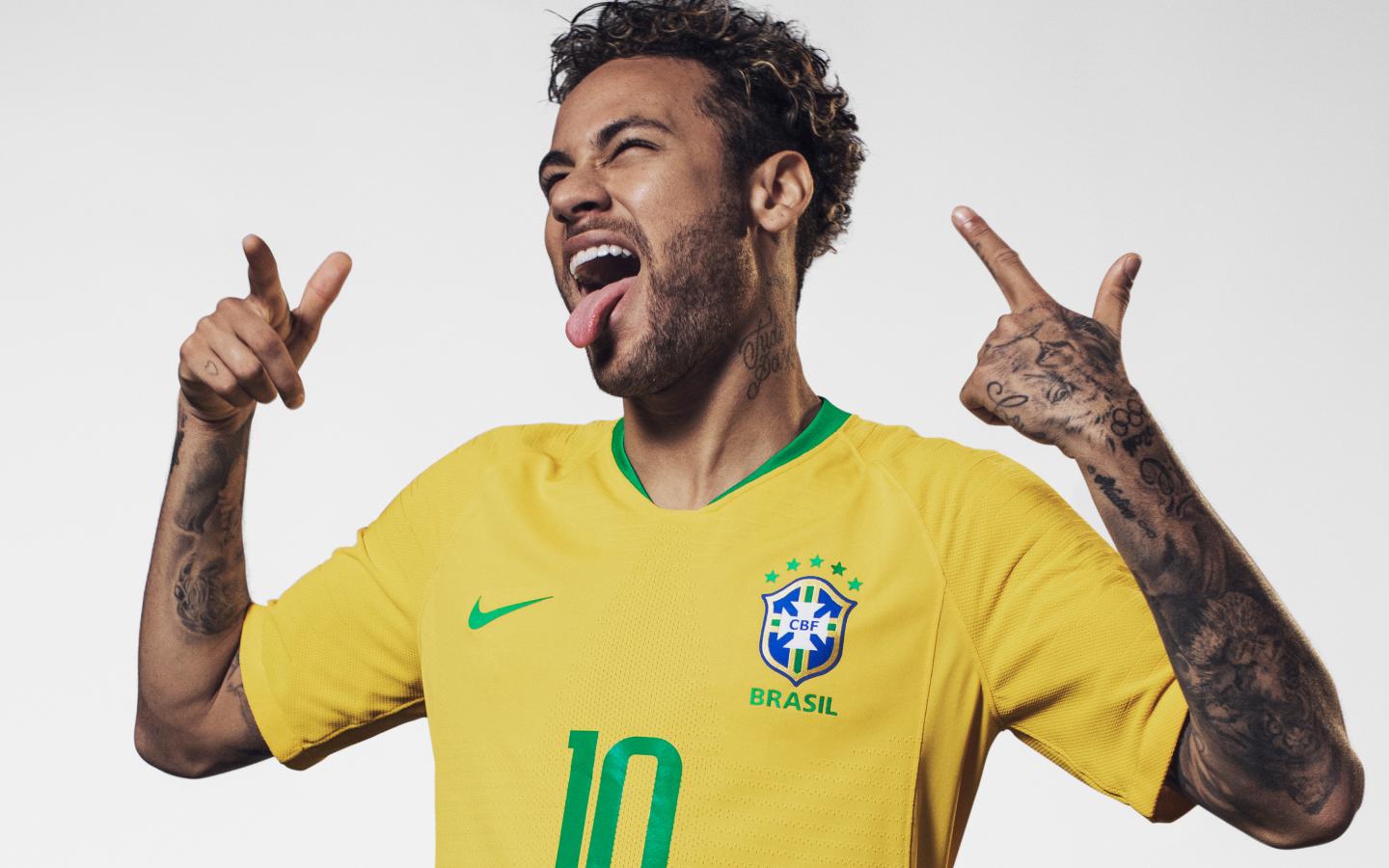 Wallpaper Brazilian football player Neymar with his tongue hanging out