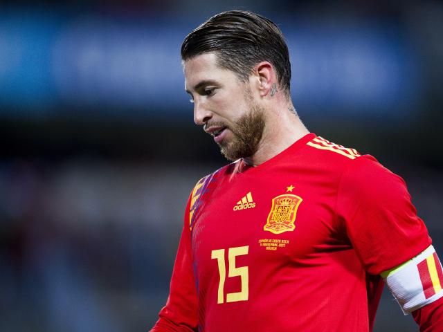 Wallpaper Popular footballer Sergio Ramos on the football field