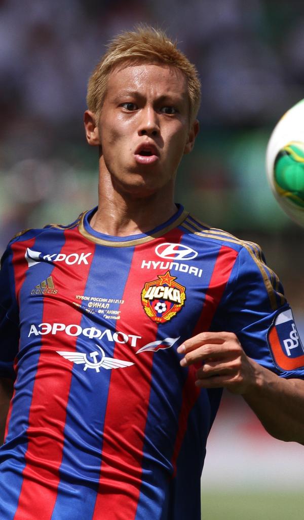 Wallpaper Japanese football player Keisuke Honda beats the ball on the field