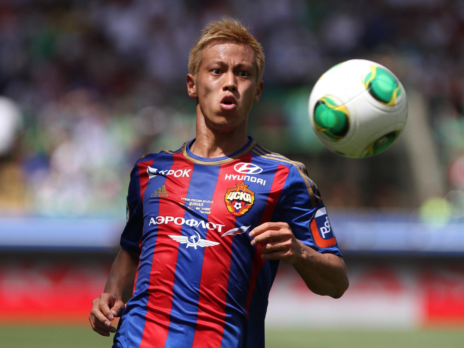 Wallpaper Japanese football player Keisuke Honda beats the ball on the field