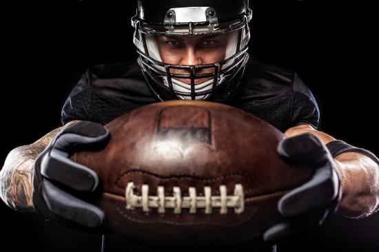 Wallpaper American football player with ball on black background