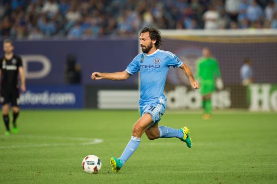 Wallpaper Italian footballer Andrea Pirlo hits the ball on the football field