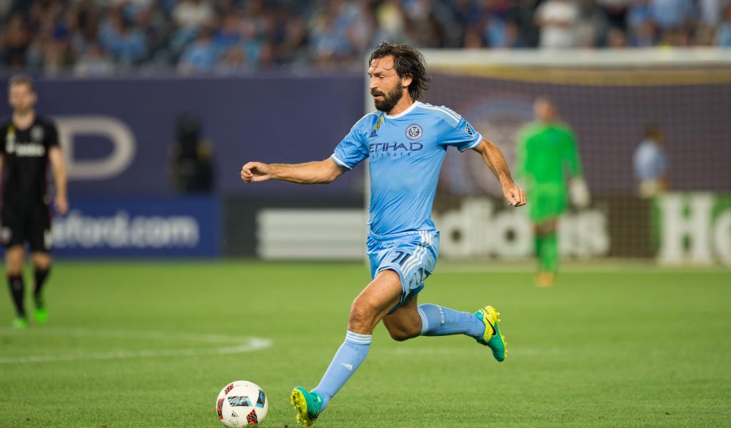 Wallpaper Italian footballer Andrea Pirlo hits the ball on the football field