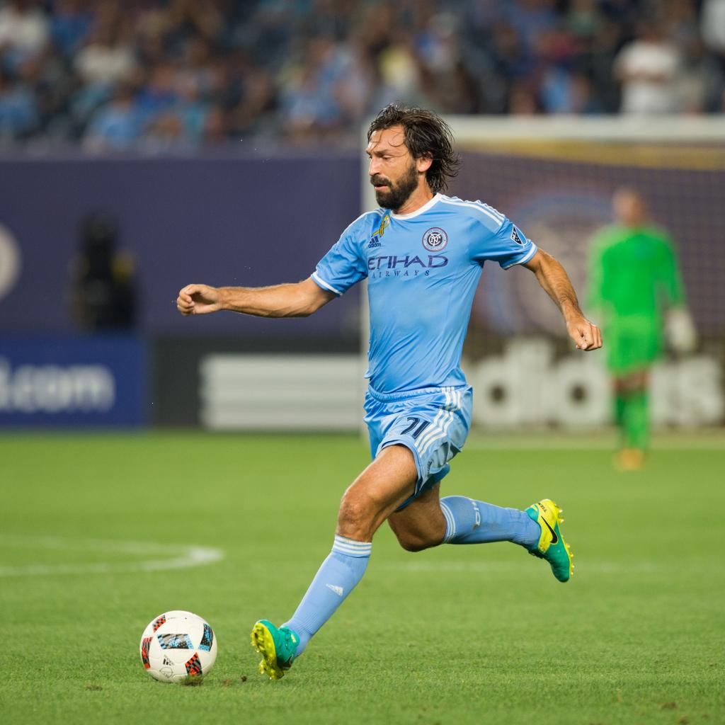Wallpaper Italian footballer Andrea Pirlo hits the ball on the football field