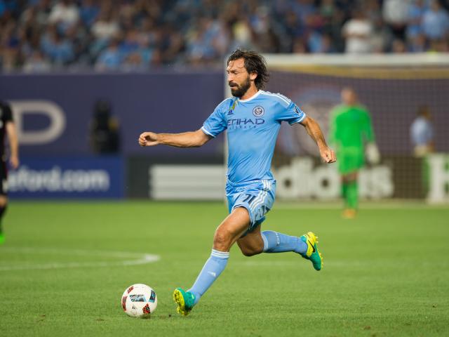 Wallpaper Italian footballer Andrea Pirlo hits the ball on the football field
