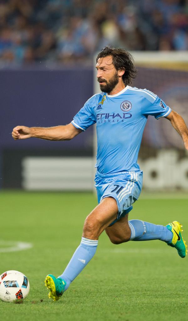 Wallpaper Italian footballer Andrea Pirlo hits the ball on the football field