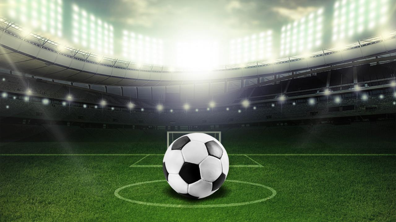 Wallpaper Soccer ball lying on a soccer field in a stadium