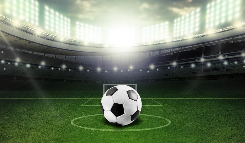 Wallpaper Soccer ball lying on a soccer field in a stadium