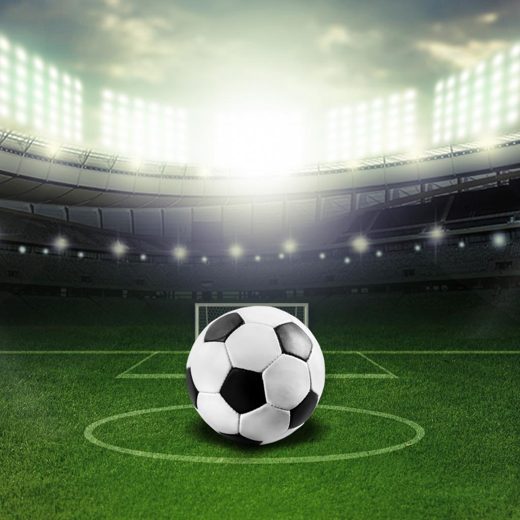 Wallpaper Soccer ball lying on a soccer field in a stadium