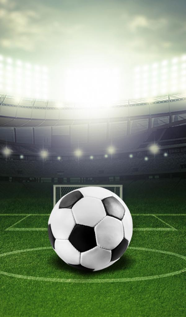 Wallpaper Soccer ball lying on a soccer field in a stadium