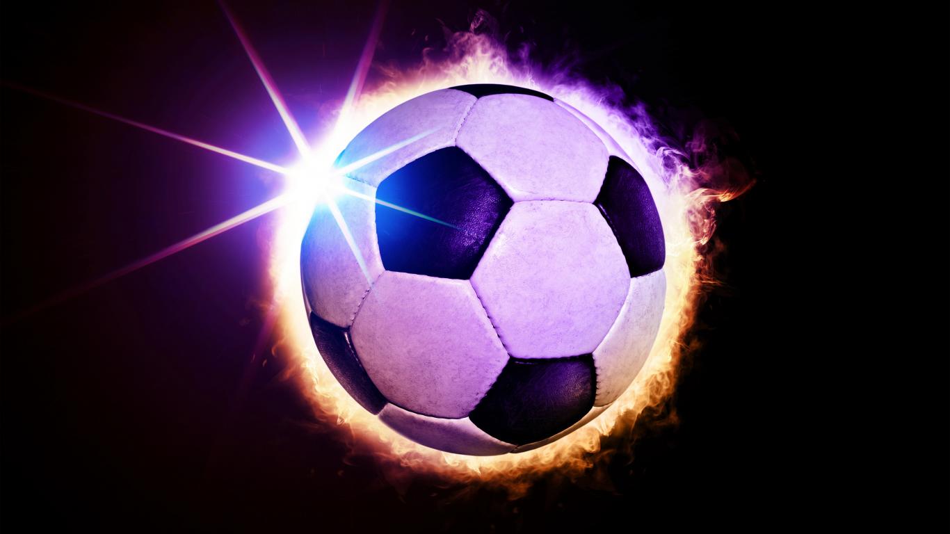 » Wallpaper Soccer ball in ring of fire on black background