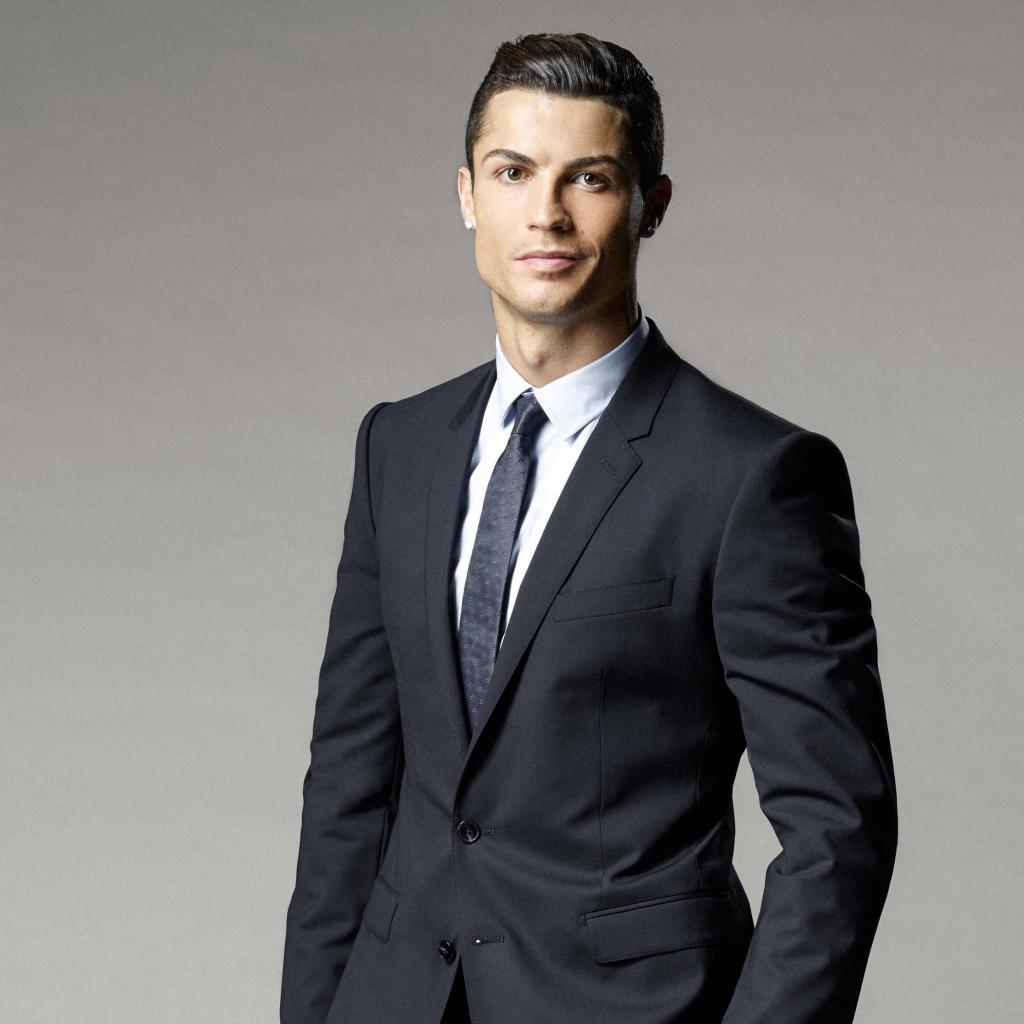 Wallpaper Soccer player Cristiano Ronaldo in a suit on a gray background