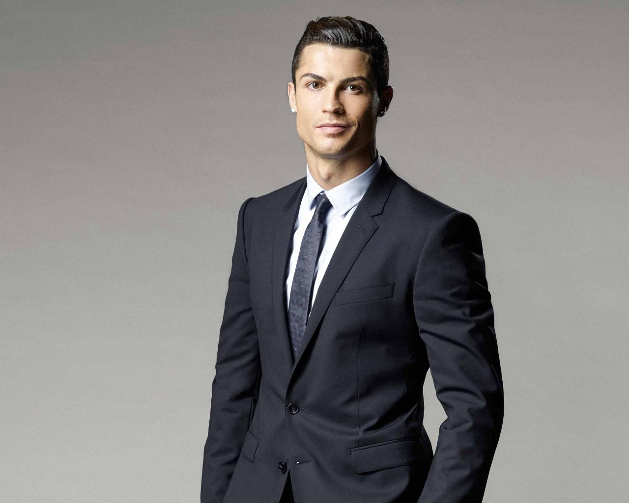 Wallpaper Soccer player Cristiano Ronaldo in a suit on a gray background