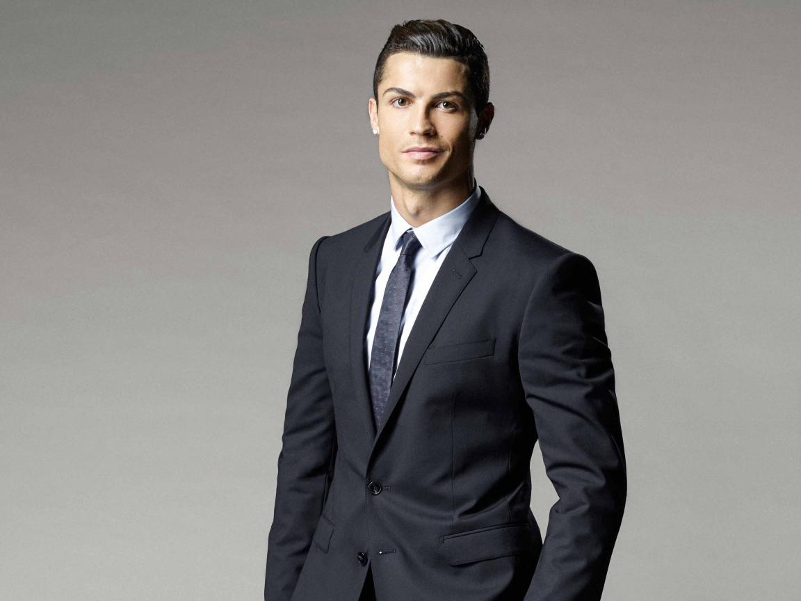 Wallpaper Soccer player Cristiano Ronaldo in a suit on a gray background