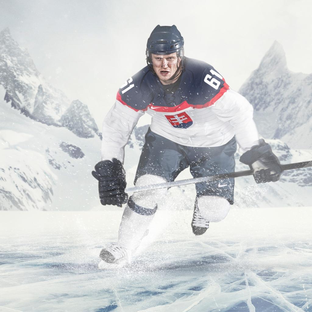 Wallpaper Ice hockey player with a stick on the ice