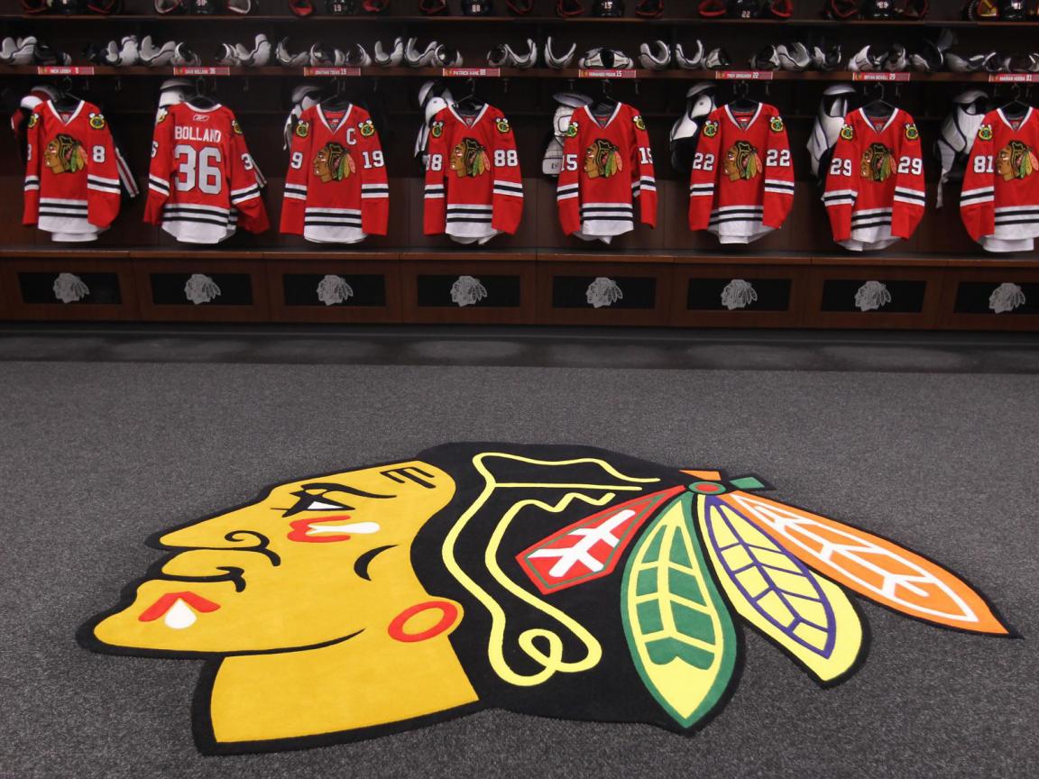 Wallpaper American hockey club Chicago Blackhawks logo and shape