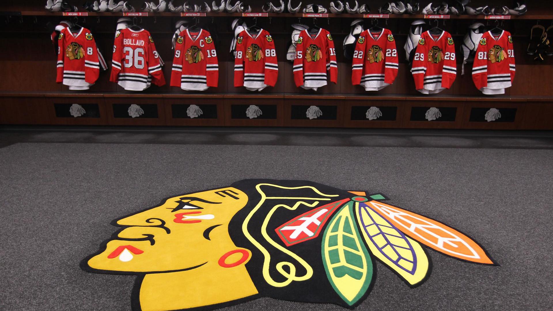 Wallpaper American hockey club Chicago Blackhawks logo and shape