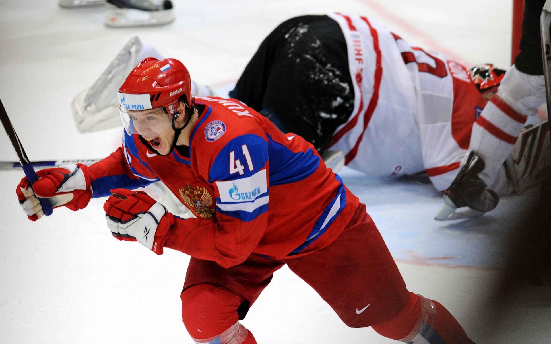 Wallpaper Russian hockey player rejoices victory