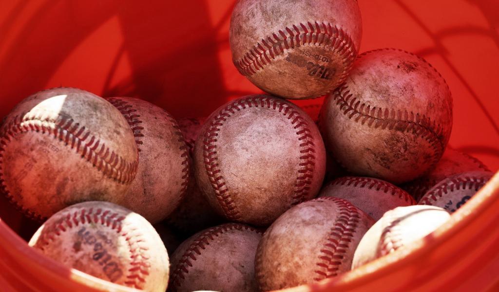 Wallpaper Red bucket of balls for baseball