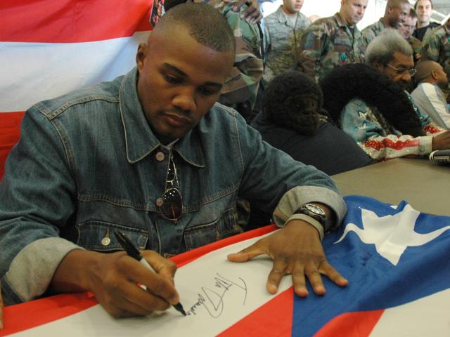 Wallpaper Boxer Felix Trinidad is signing the flag