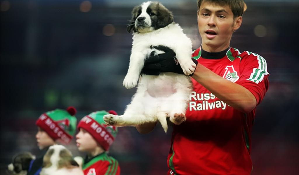 Wallpaper Footballer Diniyar Bilyaletdinov with a dog