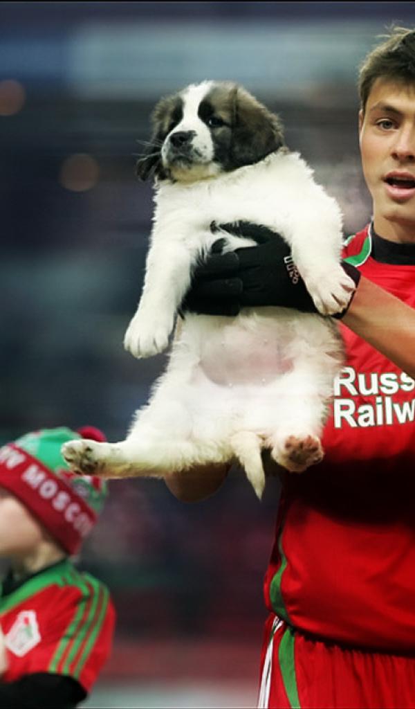 Wallpaper Footballer Diniyar Bilyaletdinov with a dog